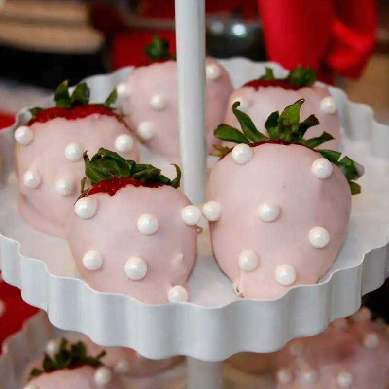 Chocolate-covered strawberries are always a treat, and these Minnie dipped strawberries add just the right touch of charm. Coated in white chocolate with a soft pink tint and finished with delicate candy pearls, they feel playful yet polished—perfect for showers, brunches, and Disney-inspired gatherings that lean classic rather than cartoonish.